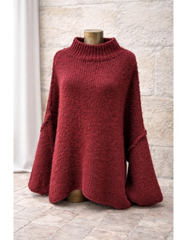 Pull oversize femme rouge en maille douce, avec col montant et manches ballon. Confortable, chaud et tendance, il offre une coupe ample adaptée à toutes les morphologies. Idéal pour un look cocooning chic au quotidien, en automne-hiver.