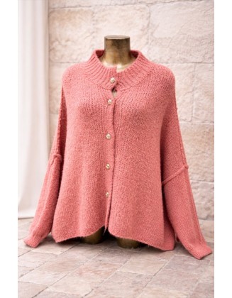 Gilet maille oversize rose saumon - Boutonné