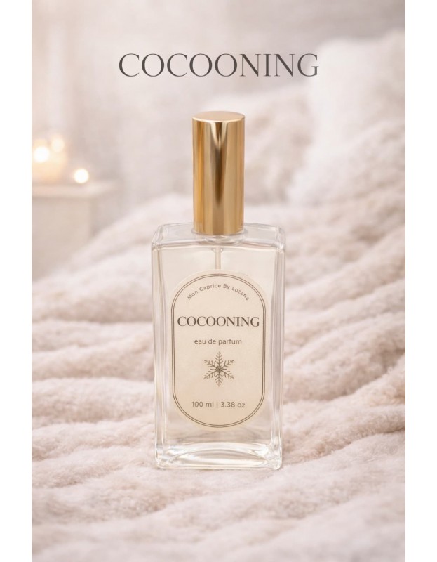 Eau de parfum Cocooning 100 ml, une fragrance douce et enveloppante au sillage réconfortant. Parfaite pour une sensation chaleureuse et élégante en automne-hiver.