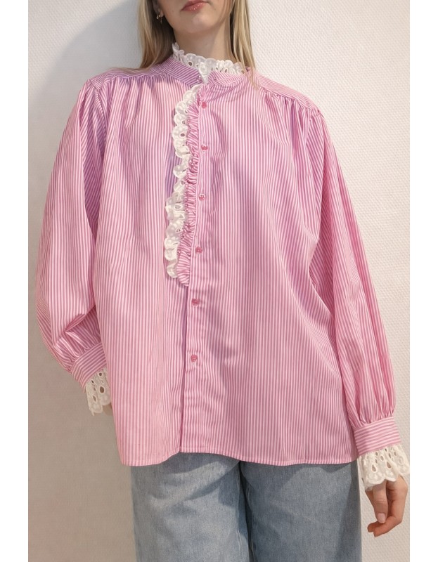 Chemise rose à rayures avec dentelle